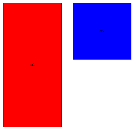 ax2.text(0.5, 0.5, "ax2", horizontalalignment='center', verticalalignment='center')